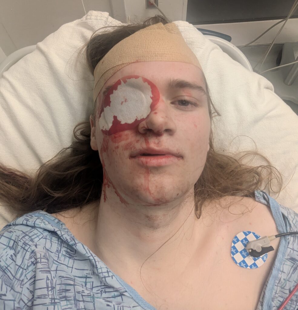 A projectile struck Tucker directly in his eye, destroying his eyeball and fracturing the bones in his eye socket. DeSimone suspects the object was a pepper ball.
